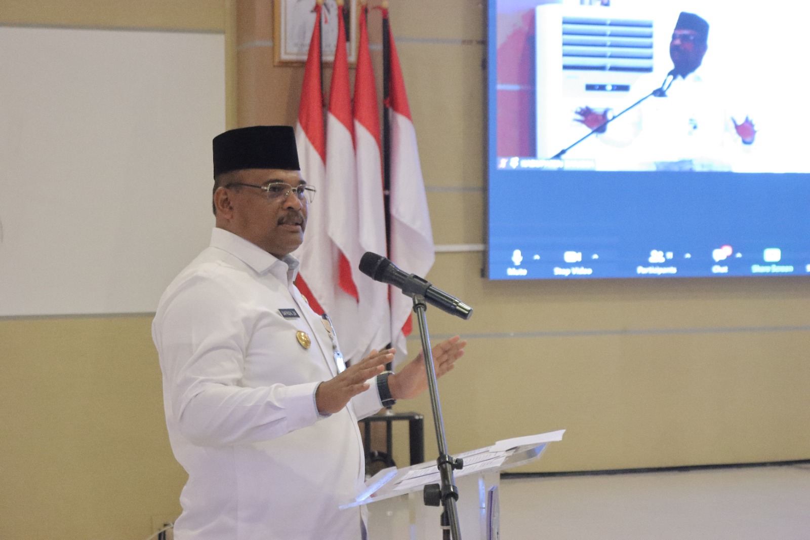 “Hari ini ada 186 UMKM yang menerima Bantuan Peralatan, 216 UMKM yang menerima Sertifikat Halal, 13 UMKM yang menerima Sertifikat Haki dan 1023 UMKM yang mendapatkan NIB,” terang Pj Gubernur Safrizal.
