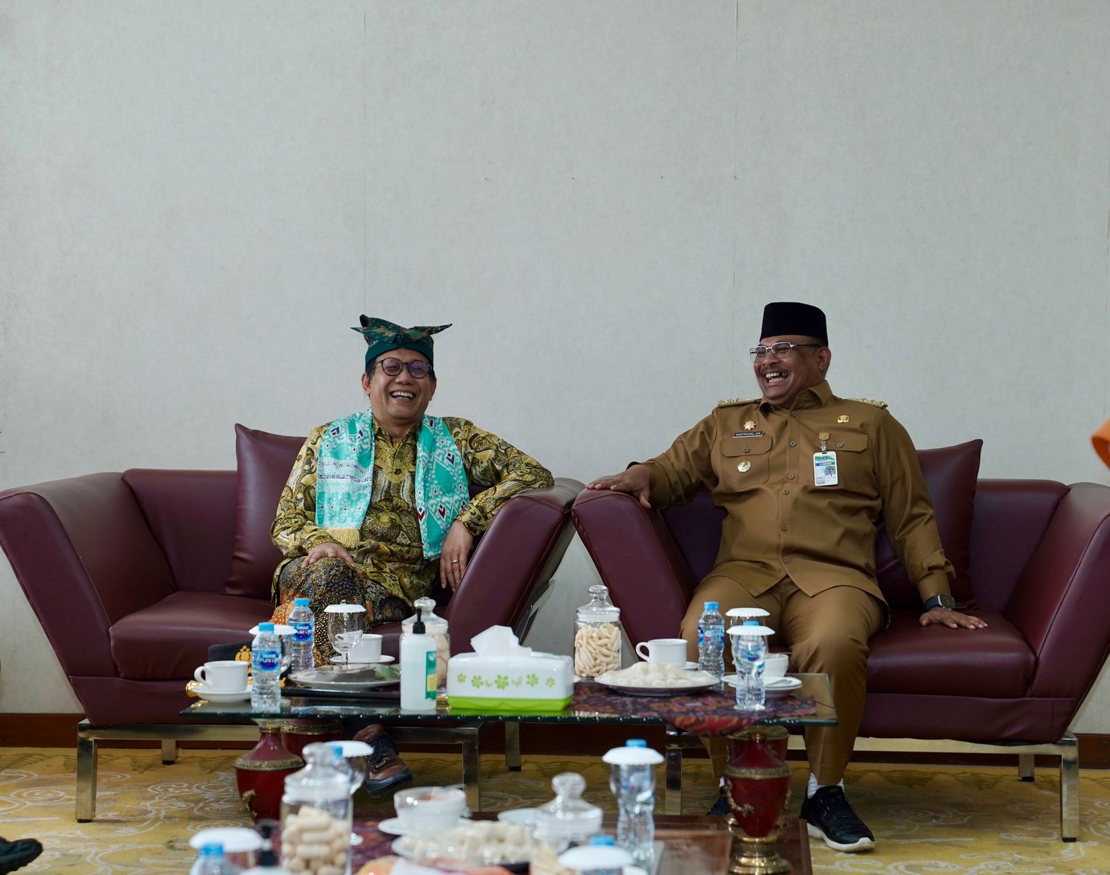PANGKALPINANG – Penjabat (Pj) Gubernur Kepulauan Bangka Belitung (Babel) Safrizal ZA menyambut kedatangan Menteri Desa Pembangunan Daerah Tertinggal Dan Transmigrasi (PDTT) Republik Indonesia (RI) Abdul Halim Iskandar  beserta rombongan di VIP Bandara Depati Amir Pangkalpinang, pada Senin (29/4).
