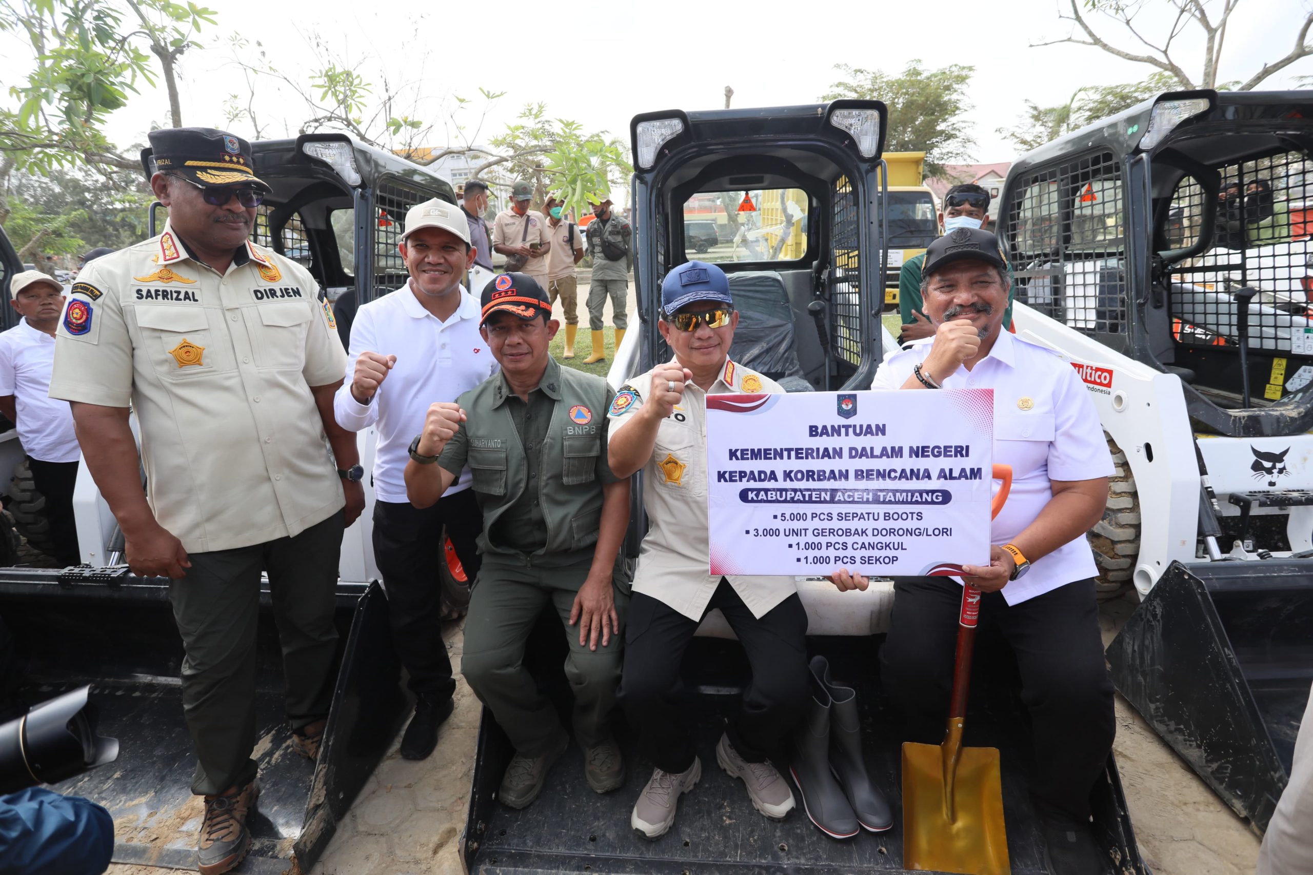 Adapun bantuan Presiden Republik Indonesia yang disalurkan berupa alat berat, yakni sembilan unit skid steer loader untuk mempercepat pembersihan lumpur di permukiman. Alat ini dirancang untuk menjangkau gang-gang sempit tanpa merusak bangunan warga. Sementara itu, Kemendagri memperkuat dukungan bantuan lapangan berupa 5.000 pasang sepatu bot, 3.000 unit gerobak dorong (lori), 1.000 sekop, danKasatgas Tito Karnavian Salurkan Bantuan Terpadu untuk Percepat Pemulihan Aceh Tamian  1.000 cangkul.
